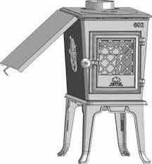 Skærmplade der kan sættes på Jøtul F602 Eco, så ovnen kan sættes tættere ind til brændbart materiale. Sidevis kan afstanden reduceres til 30 cm til brændbart.