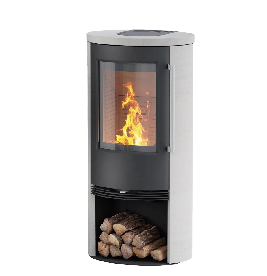 Som standard er TT21RS-WH udstyret med et koldt og flot slebet rustfrit håndtag. Der kan tilvælges en låge og et tilhørende pejsesæt til brændefaget samt en formskåret gulvplade.